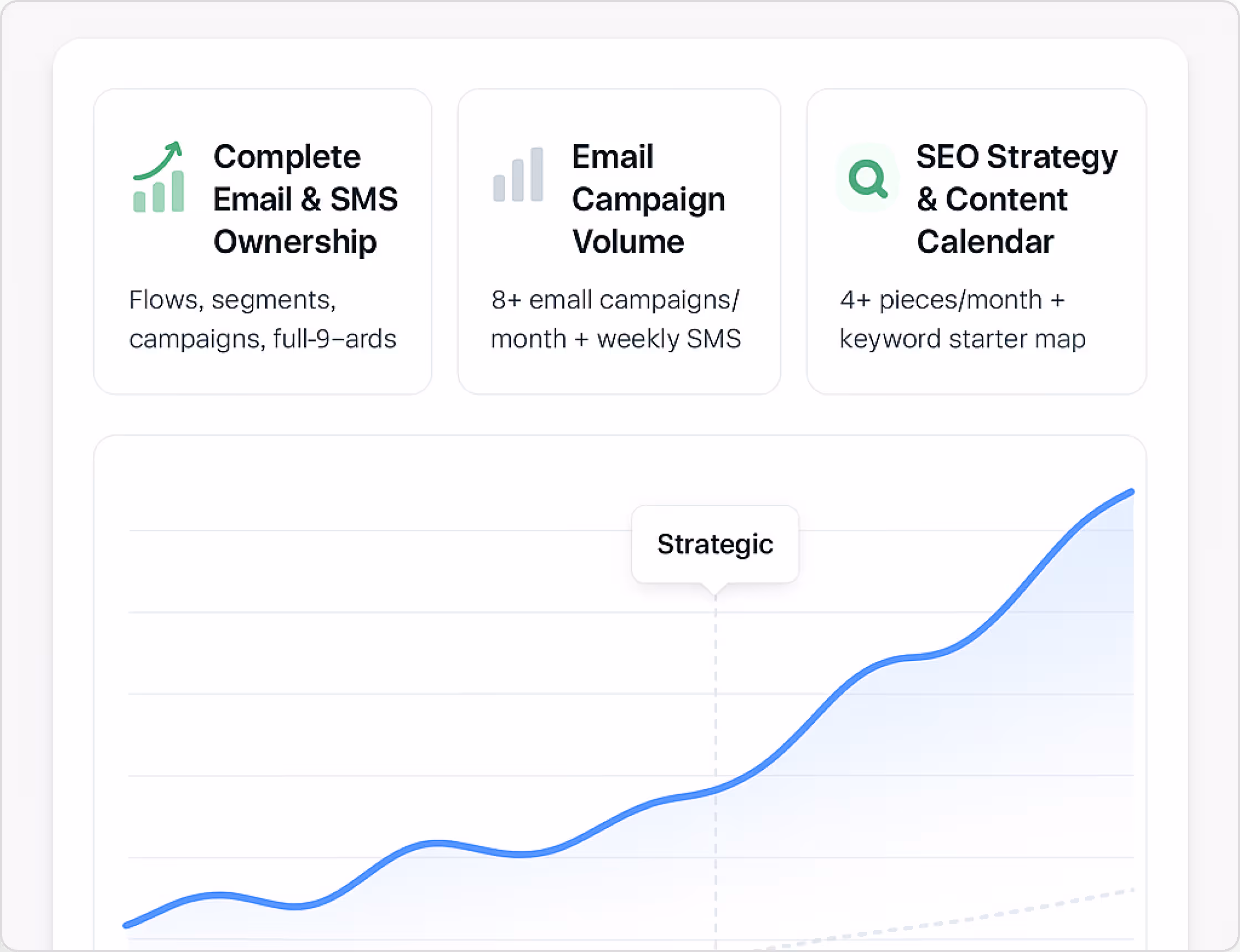 Every service is designed to plug into your existing stack — so email, content, ads, SEO, and pages all compound instead of compete.